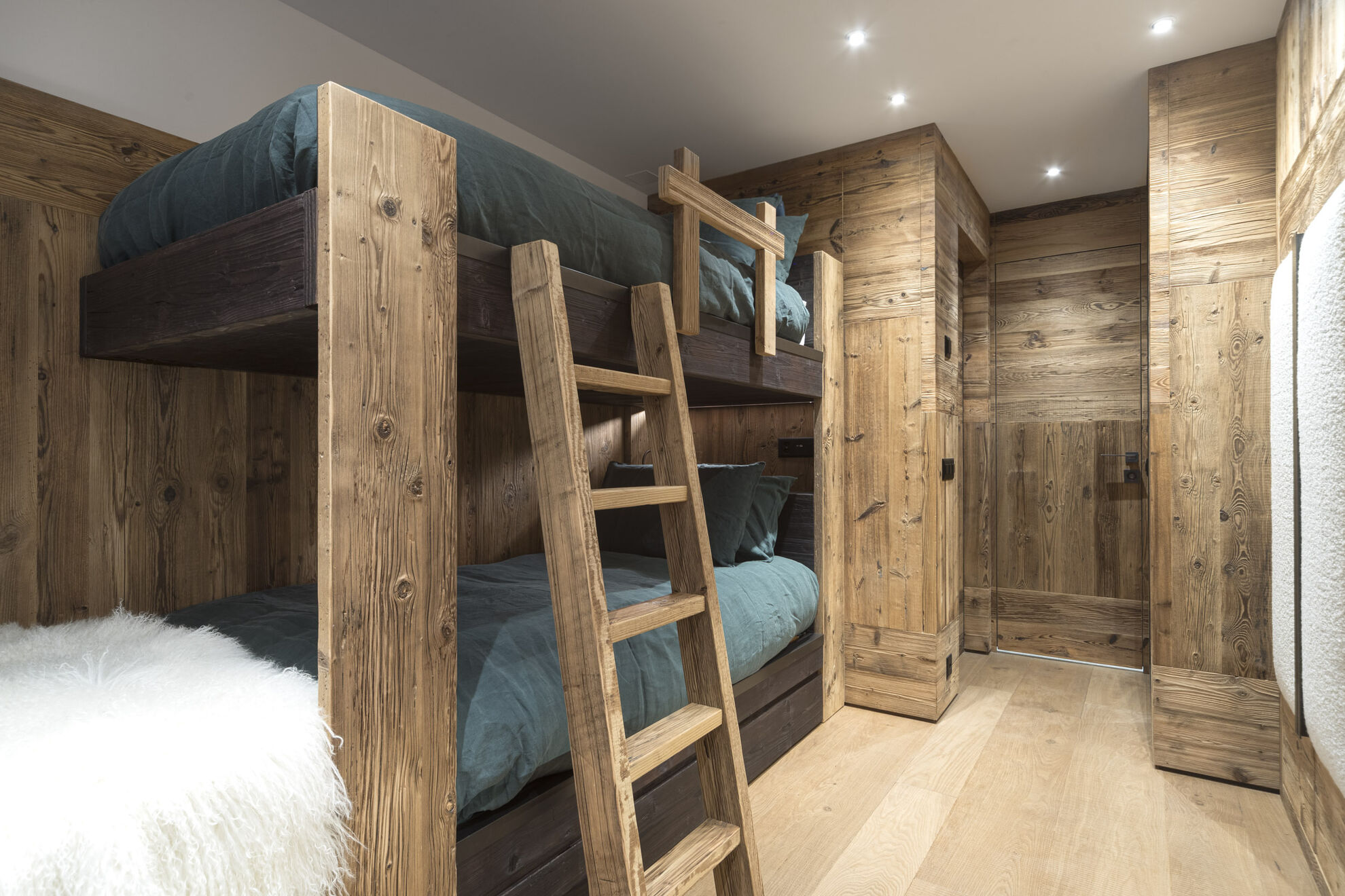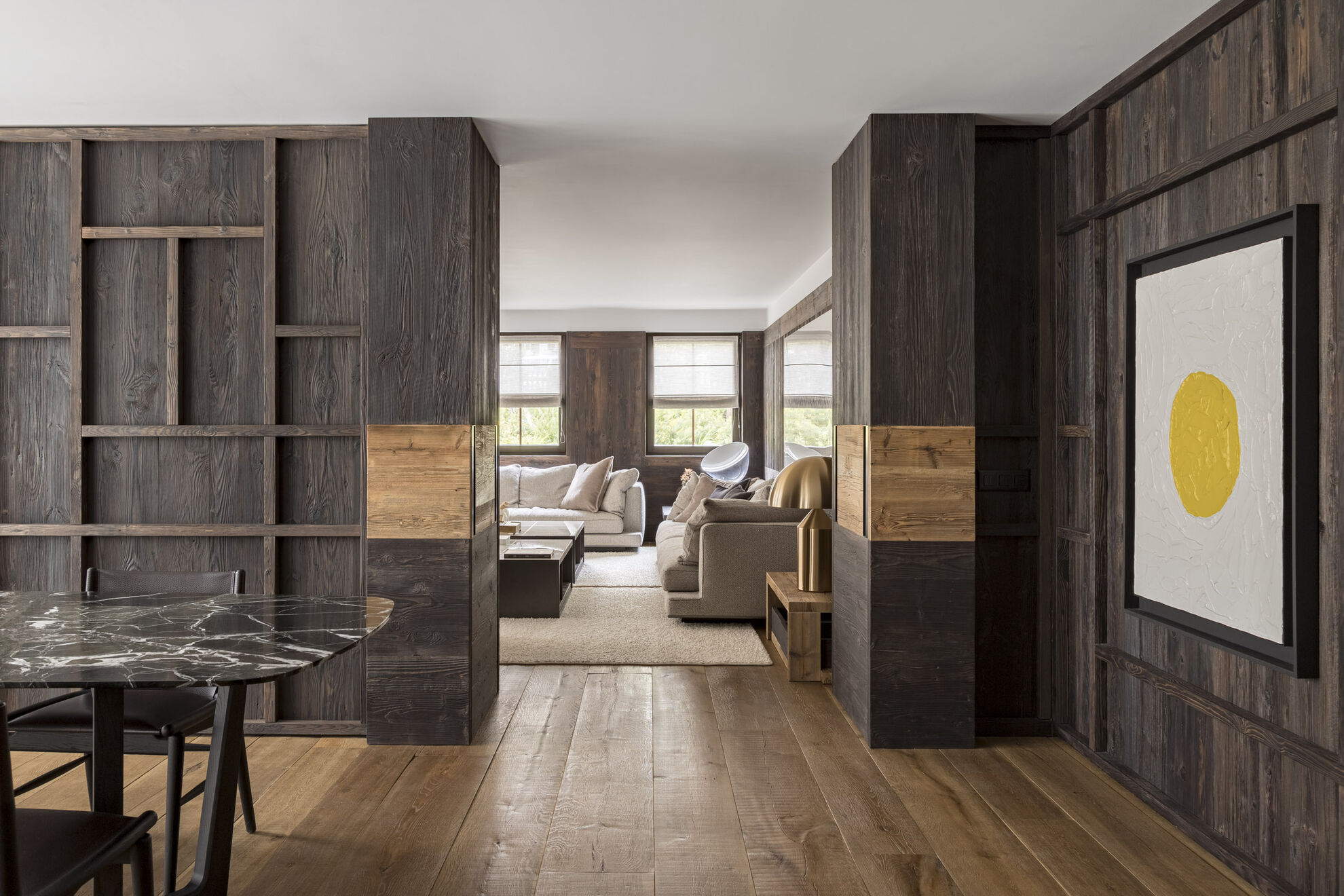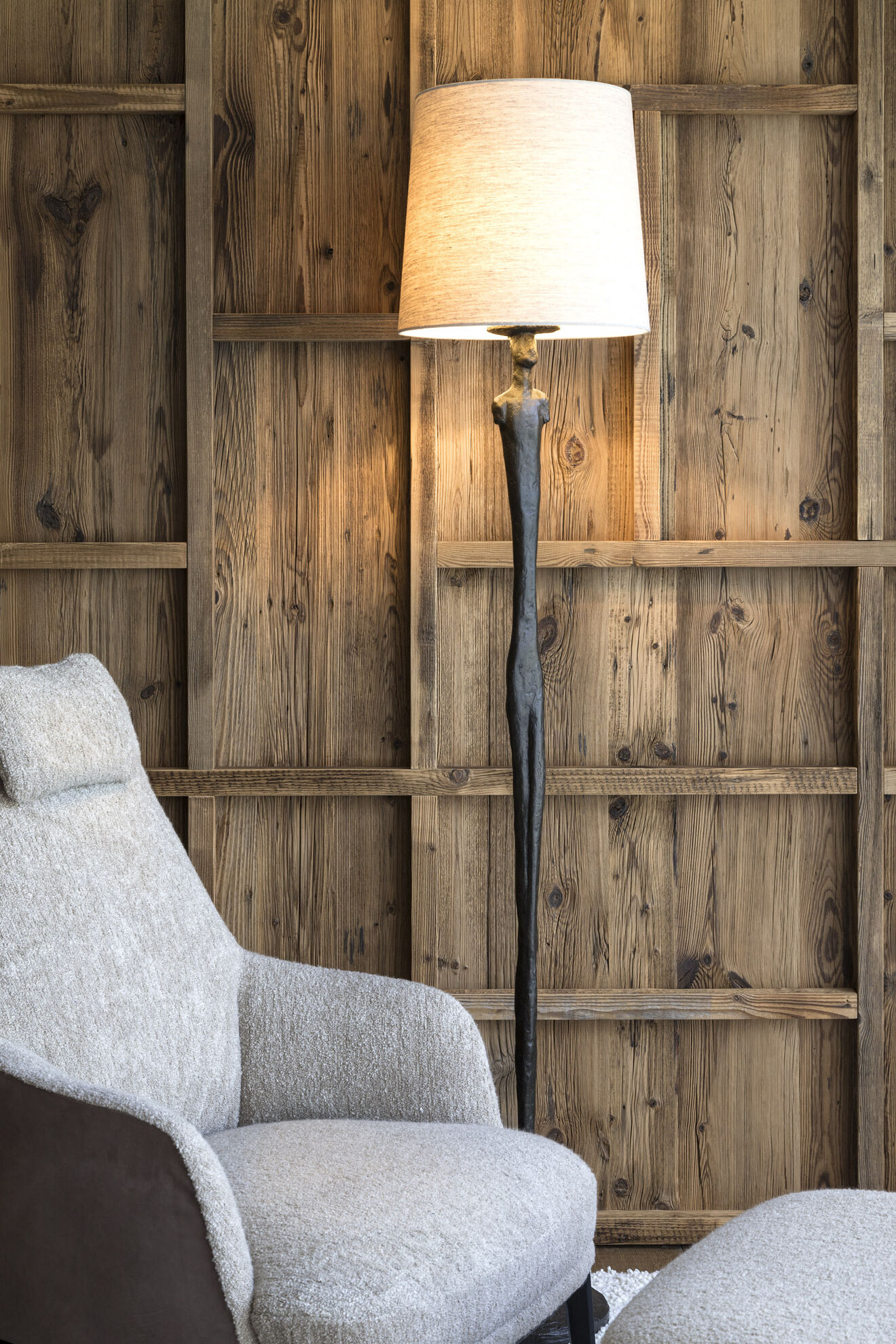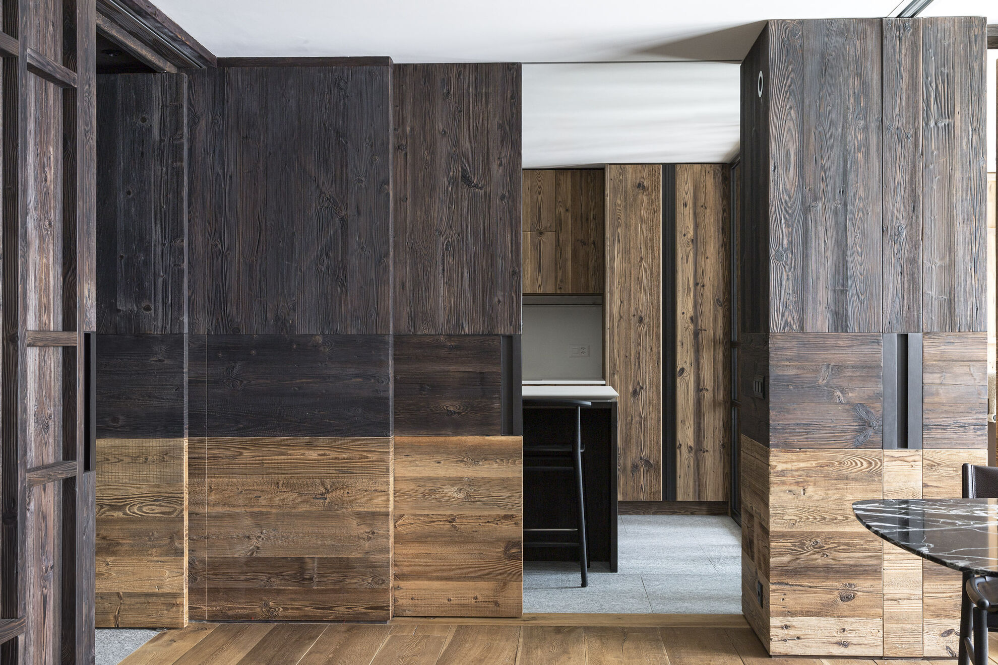 Realized in collaboration with the architect Studio Fanetti and Partners, this project emphasizes the combination of reclaimed wood and burnt wood, creating an elegant game of grains and contrasts. The use of metal elements, along with details such as decoration and frames, gives life to a space with authentic charm, perfectly integrated in the Engadin context. Each room reflects the attention to interior design, with tailor-made solutions that emphasize the raw material and mountain aesthetics.